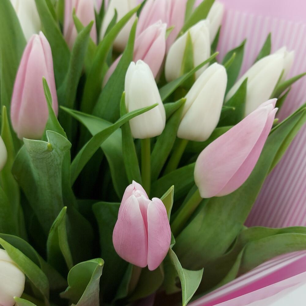 31 бело-розовый тюльпан с оформлением в Северобайкальске